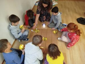 Oskárci z přípravky si dnes v počítačové učebně pod vedením paní učitelky Carvové vyzkoušeli práci s Bee-boty 🐝. Dozvěděli se, k čemu slouží a jak je možné je programovat. Byla to skvělá hodina plná zábavy, smíchu a objevování. Určitě si ji rádi zopakujeme!